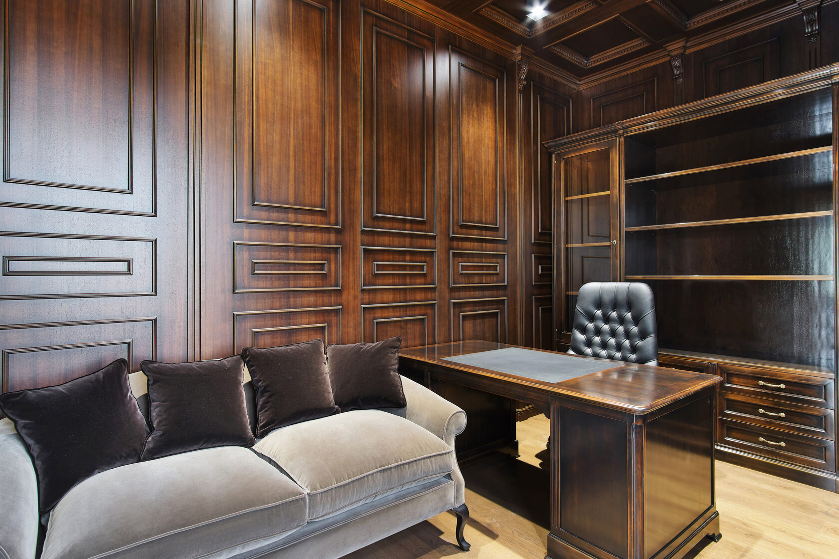 Реализованный проект классического итальянского кабинета из массива, фабрика FM Bottega D'Arte